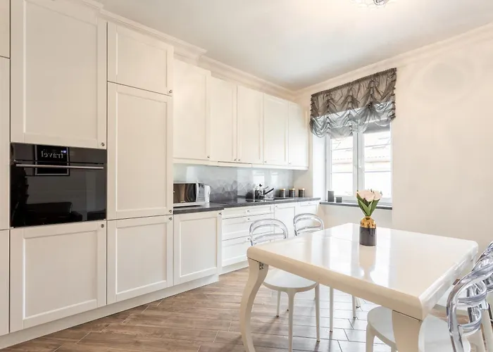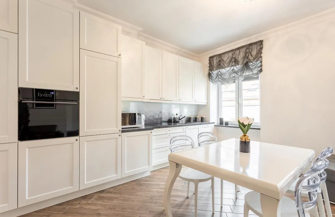 Eine voll ausgestattete Küchenzeile mit einem Herd und einem Geschirrspüler ist in den Golden Apartments Warsaw - Elegant Stay, Podwale Street vorhanden. Diese Unterkunft liegt ca. 900 Meter von der U-Bahn-Station Ratusz Arsenal und 5 km vom Flughafen Warschau-Frédéric-Chopin entfernt.